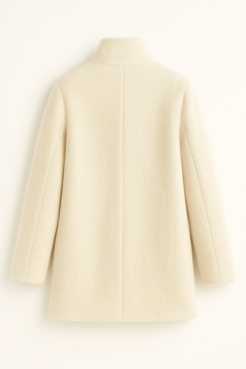Women’s Stylish Woolen Winter Coat – Cream Color, Warm & Comfortable